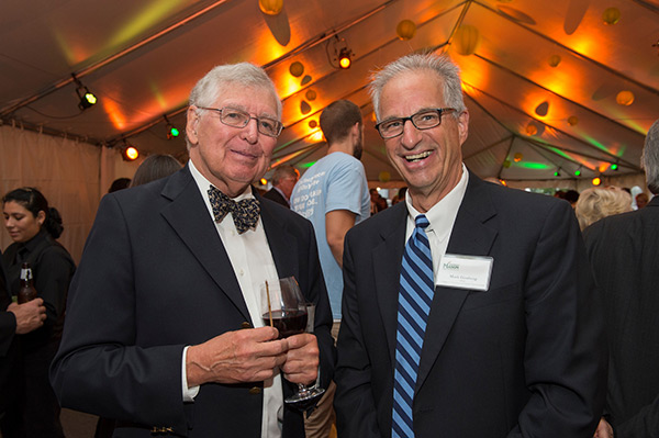Dexter Odin (left), founding member of the Reston law firm Odin, Feldman and Pittman, and Mark Ginsberg, dean of the College of Education and Human Development, were among the audience at Mason's $500 million campaign kick-off event.