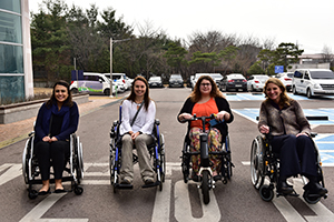 One of the hands-on experiences was test-driving wheelchairs. A group that had been strangers from an online class just days before were suddenly learning the steering, seating, and motor power of different wheelchairs while racing around the parking lot.